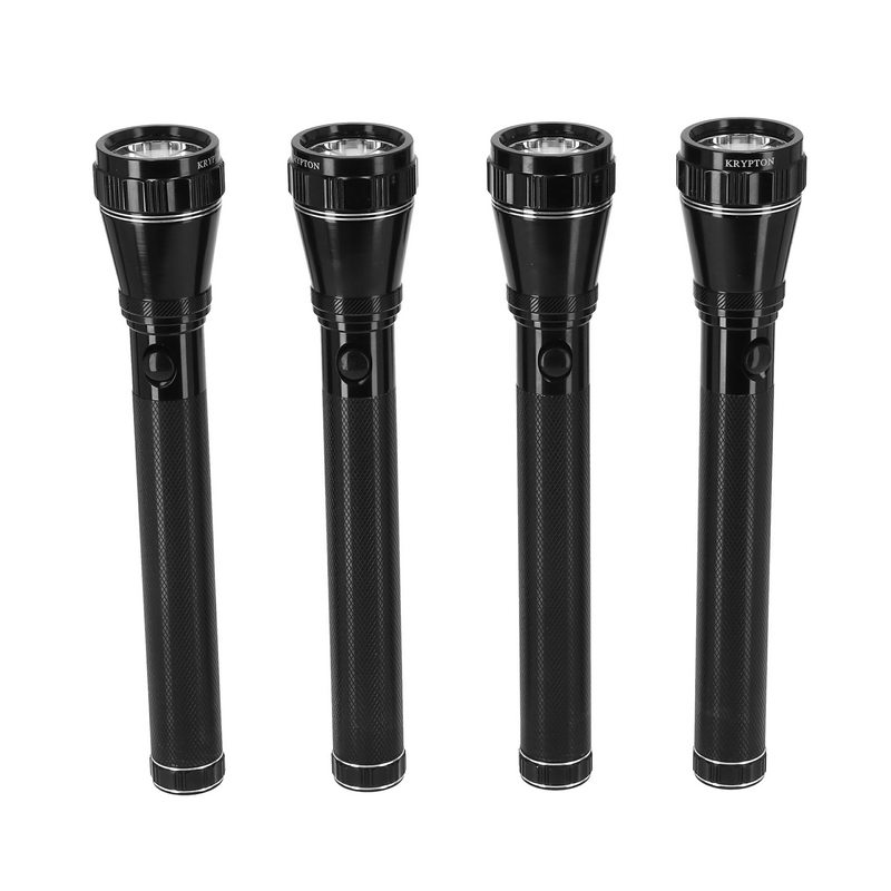 Krypton KNFL5041 Rechargeable LED Flashlight 4PC - Whether you're camping or taking a late-night walk with the dog, the reliable Krypton Rechargeable Flashlight is a good companion. Durable and easy to handle, it is an ideal handheld flashlight for use around the house or in an emergency. It can be used for both indoor and outdoor activities. It is small but powerful that can be easily carried. Utilizes a genuine high performance, high-efficiency CREE LED for high brightness. It produces a strong bright light, comes with a bright CREE LED Light for illumination for use in the night or when you are camping in the summer or for any emergencies & gives a bright light. The high-performance 1900mAh battery gives you the highest possible capacity, efficiency, reliability, and safety. A perfect option for cycling, camping, hunting and fishing! The tactical flashlight can be used as camping lantern, background light, night safety light, emergency light etc. Take the flashlight when you go camping or picnics on your next adventure. High Power Aluminum Flashlight, With Unbreakable Lens and High Capacity Rechargeable 1900Mah Battery. Hyper Bright Cree LED comes with High Polished Reflector which withstands extreme temperatures and delivers superior optical performance.