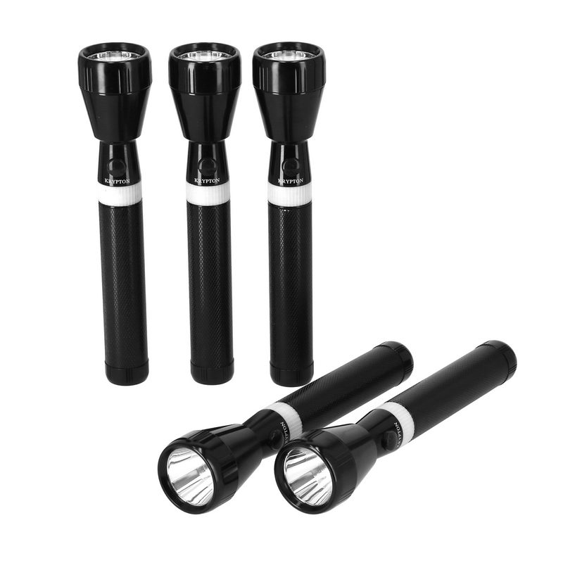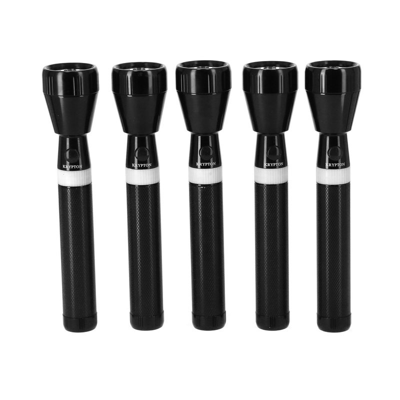 Whether you're camping or taking a late-night walk with the dog, the reliable Krypton Rechargeable Flashlight is a good companion. Durable and easy to handle, it is an ideal handheld flashlight for use around the house or in an emergency. It can be used for both indoor and outdoor activities. It is small but powerful that can be easily carried. Utilizes a genuine high performance, high-efficiency CREE LED for high brightness. Compact but also comfortable to hold, the torch fits very well in your hand or bag. Made of high-quality aluminum alloy which is sturdy and durable and the skid-proof design can prevent slip out easily. The high-performance 1900mAh battery gives you the highest possible capacity, efficiency, reliability, and safety. The tactical flashlight can be used as camping lantern, background light, night safety light, emergency light etc. Take the flashlight when you go camping or picnics on your next adventure. Highlights Portable design makes it easy to hold and compact size ensures easy storageCorrosion, water and shock resistant, so great to take along tailgating, camping, fishing or hikingHigh Capacity Rechargeable 1900Mah BatteryHyper Bright Cree LedHigh Polished Reflector Withstands Extreme Temperatures And Delivers Superior Optical PerformanceHigh Quality Tempered Unbreakable LensPrecision Machined High Strength Aluminum Alloy Flashlight CaseAnodized Inside And Out For Improved Corrosion Resistance And DurabilityWater Resistant Seals Throughout The Flashlight Protect All International Components From Harsh Environmental Conditions