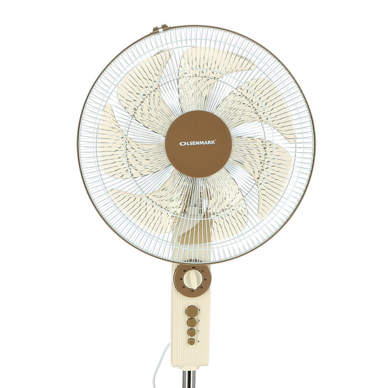 Summer cool wind! Feel free to enjoy!Olsenmark Rechargeable Stand Fan lets you experience the natural wind, brings you a cooler experience, and instantly get rid of the heat of summer. Modern look, Easy to store, convenient to move, Rechargeable Fan makes this Olsenmark Rechargeable Fan unique from other normal fans. This battery-operated fan uses a high quality battery. It can provide continuous wireless breeze on full charge for hours. It can also be very useful in unannounced or sudden power outages. This fan has a super quiet powerful copper motor which will ensure that the blades turn at a high speed to generate cool air quickly. Unlike other fans on the market, this powerful motor sets it apart from other fans as it performs much better and with significantly more power. Add on the stylish chrome finish and it's perfect for almost every space in your home or office. The height-adjustable design works as both a stand fan and a desk fan. Add on the stylish chrome finish and it's perfect for almost every space in your home or office. Featuring an adjustable tilting head and an oscillating function, the fan can easily be adjusted to point the breeze any direction to cool the entire room. The removable front grille makes cleaning the fan easier and keeps the stand fan clean.
