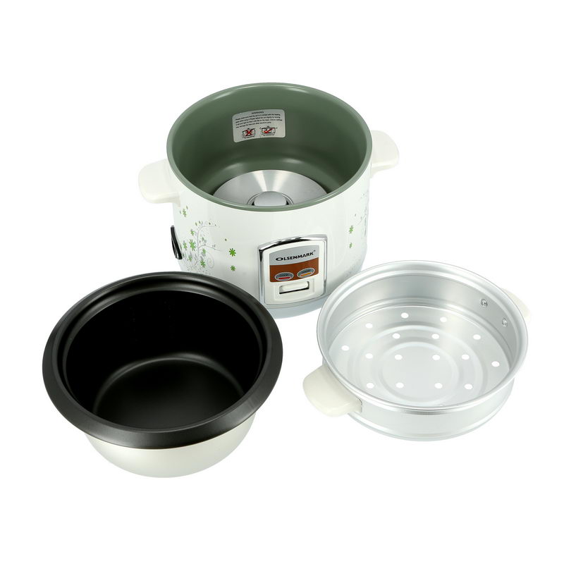 Olsenmark OMRC2250 Rice Cooker, 1.0L | 3 In 1Rice Cooker and Steamer is an easy way to cook rice. With a 1.0L capacity bowl, the Olsenmark Rice Cooker is useful for larger households who love to cook. The keep warm function allows you to keep your rice warm, ideal for those busy families who find it hard to all sit down together. its non-stick removable bowl enables easy cleaning and easy of use. The main features of Olsenmark are:3-In-1 Multiple Features Cook: With the push of a button, the device starts working and automatically adjusts temperature. Steam: The steam function lets you cook rice healthily while preserving the nutrients. Warm: It can also warm the rice back to their fresh hot state. Durable and Tougher Outer BodyThe cooker has an elegant design and a durable body. It has non-slip feet at its base, they keep the pot firmly in place. It has a compact and cute design. It covers less space and does not clutter your kitchen counter.Large Capacity, AccessoriesThis pot has a large capacity of 1.0L. Now you can make large servings for the whole family or deal with sudden guests. It is quick and efficient. The package includes a measuring cup and spoon. The measurement cup adds preciseness to your cooking, and with the rice spoon, you can take rice out with ease.Perfectly Cooked RiceOur Olsenmark rice cooker is best used with white and wholegrain rice - such as sushi rice, aromatic rice, jasmine rice and basmati rice
