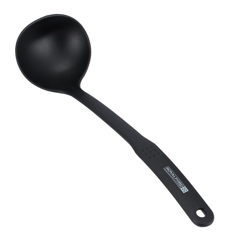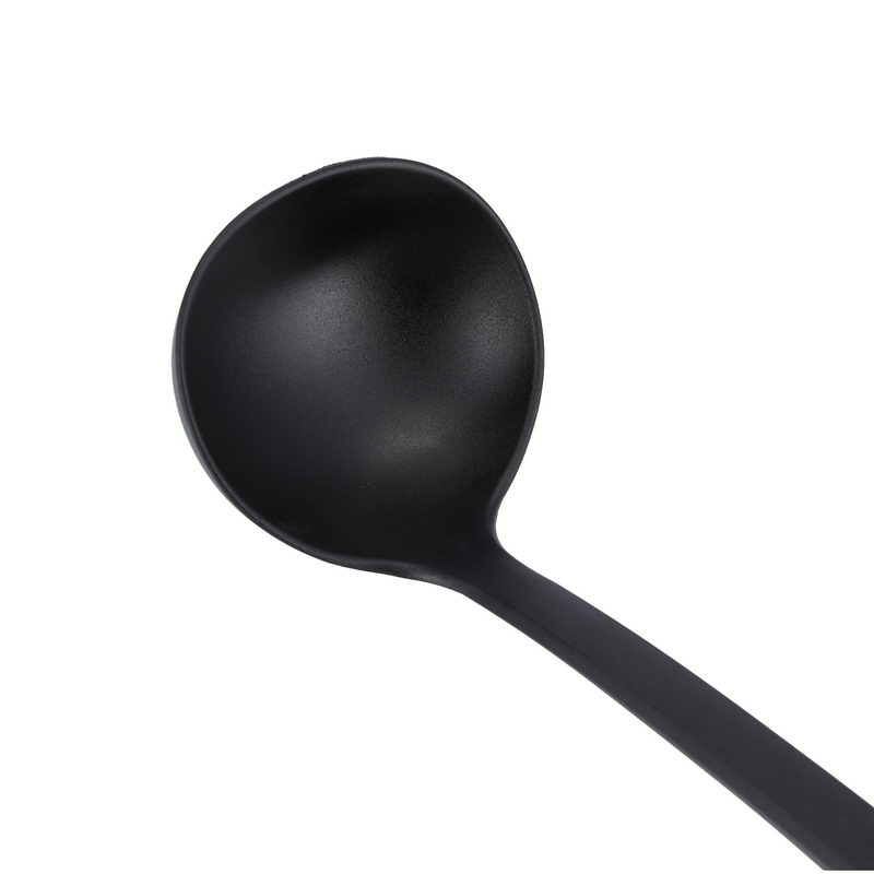This cooking ladle is ideal for hundreds of cooking tasks - from stirring to scooping, mixing, serving etc. It's heat-resistant, so you can safely use it in hot pots and pans without having to worry about it melting. And with its sturdy handle, you always have total control whatever you're cooking.SAFE FOR NON-STICK -Its gentle on the non-stick surface. No nicks, no scuffs and no scratches!COMFORTABLE HANDLE - The spoon boasts an ergonomic handle. This makes stirring & serving much more comfortable. And with its soft-touch design, it's really easy to maintain a secure hold as your stir, scoop or serve. With its long handle, you can reach right to the bottom of your deep stockpots & mixing bowls. This way not a drop of sauce, batter or soup has to go to waste.STAIN AND ODOUR-RESISTANT -Thanks to its heavy-duty nylon design, this spoon won't dis-colour or absorb odours. This makes it ideal when you're cooking with strong or colourful ingredients.DURABLE AND HEAT SAFE - This Ladle Spoon is made of sturdy, heat-resistant nylon, so it's great for stirring hot pans of soup or scooping up servings of sauce. It's heat safe, so you don't have to worry about it melting.EASY TO STORE AWAY - Its comfortable handle features a built-in hanging loop. This means you can simply hang it up on a kitchen hook or a utensils rack once you've finished.