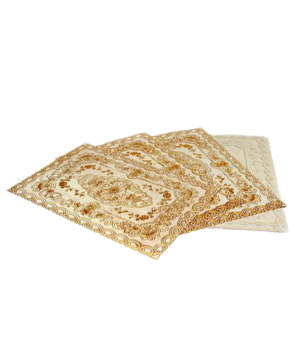 Eco-Friendly Kitchen Accessories made of high quality environmentally PVC, Very durable, easy to clean and Non-fading; this Royalford table mats is pure and elegant, is perfectly used as table decor, making your dining room comfortable. The size of this table place mats is 12*18cm. 6 sets of PVC place mats per package. Perfect for daily use and meet your different needs, good match with dark wood table, glass table, white dining table, wooden farmhouse table, brown dining table. Protect your table with this pretty set of six place mats, decorated with the gorgeous design. This set includes all the table mats you need for a big dinner party or Christmas lunch, or simply for everyday dining. Made using a strong lacquered finish to give them a shiny, luxurious feel; as well as being highly durable, these place mats can withstand high temperature. Perfect addition to your dinner table, beautiful stylish place mats to add more fun to your kitchen table; the beautiful square shape and design is eye catching which will make you in happy mood when eating; it will improve your dining experience and impress your guests. Use these when eat altogether during the dinner, BBQ, family gatherings, suitable for parties and more! Its color gives a metallic luster under the illumination of the light. It feels more style. Great for Thanksgiving, Christmas dinner, outside parties, causal kitchen decor and perfect for gifting! Give a glamorous touch to your table for Christmas Eve, wedding centerpiece, anniversary, birthday party, at home, high end restaurant, yacht!Washable Place mats, stains just wash off and it dries quickly, mildew resistant, no fading. Use soapy water to clean it when there is a stain stuck or easy clean with wet cloth, or rinse with little cleaner would make them look as new. Dry naturally, Dry Quickly. Easily stored, it can roll up to put it away, also can be flatted when put out to use.