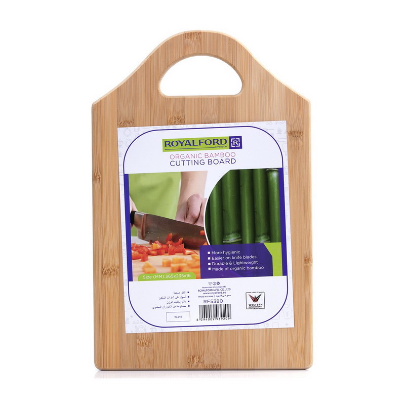 Helping hand in your Kitchen!Prepare delicious Meals easily with the help of chopping board from Royalford, Ideal for food preparation, from slicing bread to cutting meat to chopping up vegetables. The cutting boards is only 0.8cm thick, making them easy to store away when not in use. Bamboo is easy on knife blades and is stronger than hard woods and easier on the environment and is undoubtedly the best material for cutting boards. This bamboo cutting board sizes (36.5x23.5x0.6) cm for cutting a variety of foods including meat, vegetables, fruits and cheeses. The slim design makes it easy to store and are a greener alternative to plastic or metal cutting boards.A beautiful kitchen deserves a beautiful chopping board! Prepare food in style. Perfect for everyday cooking, this fantastic cutting ensures you always have adequate chopping space when you're cooking up a storm.ORGANIC BAMBOO - Made purely from durable bamboo, these chopping boards are not only water resistant but also sustainable & eco-friendly. Easier on Knife Blades and Eco-friendly.Great gift idea for weddings, housewarming, retirement, birthdays and Christmas gifts for ALL kitchen enthusiasts.Bamboo boards are lighter than most wooden boards, but extremely hard, durable and scratch resistant. Protects knives against early dulling, helping to keep them sharp.Helps to chop different foods safely and hygienically - ensuring that you never cross-contaminate, and risk affecting the flavor of your meals!Stylish and versatile chopping board that will make a great addition to your kitchen