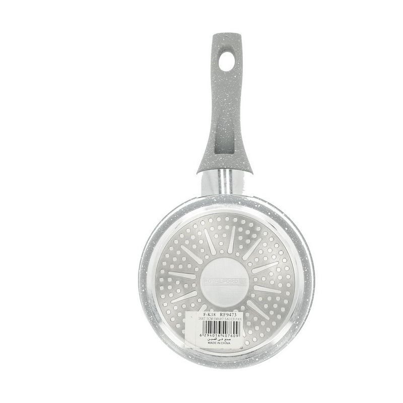 A healthy way of cookingRoyalford Smart Saucepan is a healthy alternative to traditional pots and pans which lets you enjoy beautiful cooked meats and vegetables. Improve your collection of pots and pans with this stylish, high quality, strong forged aluminium round shaped saucepan; enjoy perfect cooked foods every time.Thanks to strong forged aluminium build finished with a revolutionary marble effect coating that is wonderfully non-stick with 3.8 MM Induction Base, so it heats up quickly and evenly so you get a consistent cooking surface with no hot spots. Food can be prepared in minimal oil for healthier meals for you and your family. Free from PFOA & PTFE, the saucepan is suitable for most hob types due to strong forged aluminium build. A universal induction base ensures the casserole is compatible with all gas, induction and electric hobs.The secret to its speed lies in the induction base and forged aluminium body, which spreads heat quickly and evenly. This means your favourite foods arrive on your table in a fraction of the normal cooking time. The tough, durable coating allows food to release from the saucepan with ease, too, and makes it simple to clean.To make things easier, the saucepan is lightweight and feature soft-touch handle for ultimate comfort and safety with every use. The handle allows you to transfer the saucepan dish securely from hob to hob, or to the table, with ease. The Casserole dish looks clean & smart in your kitchen! Cook up fast, healthy family meals including delicious meat, vegetables, chicken stir fries, hearty seared steaks and more using less oil for healthy eating with little effort and make flavour-packed meals in minutes with this fast-heating, family-sized revolutionary smart saucepan. Additional Information:Product Size: (16 x 7.5) CM