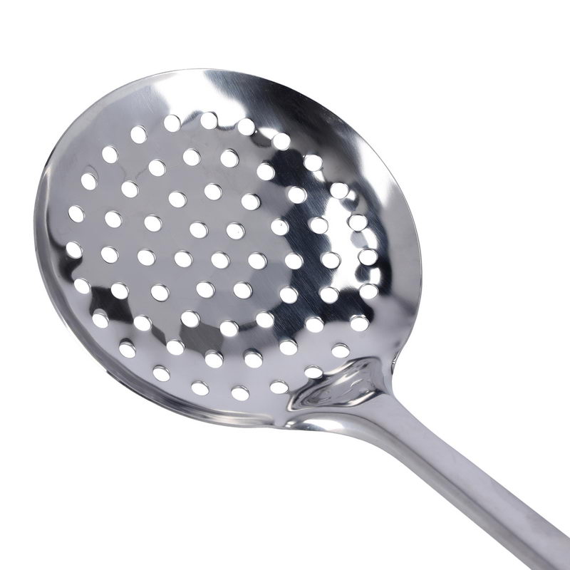 Never compromises any imperfections when it comes to your kitchen gadget. Royalford offers this unique and elegant high-quality Skimmer. Made of high-quality stainless steel, durable, long life, no corrosion, no rust, crooked, broken or deformed; rapid separation of hot oil or boiling water. Ideal for your favourite French fries, vegetables, meat, oysters, and more!It will not dissolve like plastic in thermoplastic oil; it is easy to let the liquid flow out. Suitable for fried foods, such as potato chips, chicken legs, pick up noodles, Spaetzli, pasta, pasta, etc. The long handle protects your hands from damage caused by hot oils and fats while allowing you to cook your favourite foods,Easy to clean, dishwasher safe. Mirror-polished, circular handle design, highlighting the artistic luster, easy to clean! Rivet reinforcement, durable, hollow handle, high temperature, the handle is not hot, can effectively insulate.Easy to store and easy to quickly grab this skimmer, this also looks great reflecting in the light while hanging in your kitchen; A much-appreciated gift for friends, family, and co-workers. Cooks, professional chefs, and institutional cafeterias are buying several sets at a time.