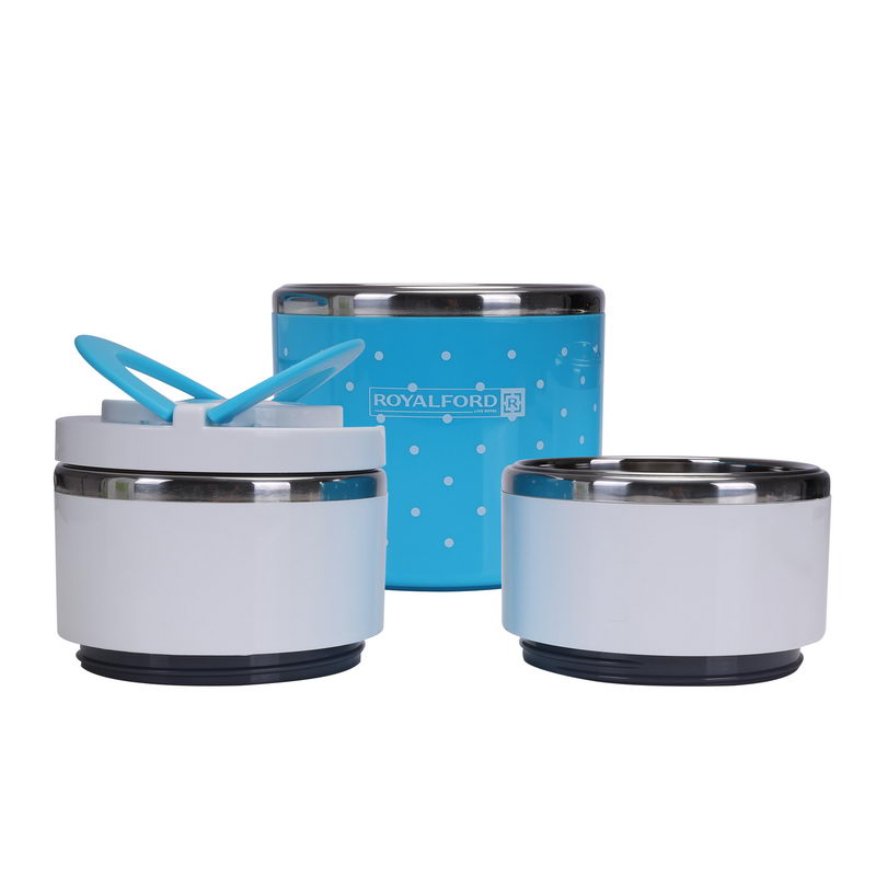 Royalford Three Layer Lunch Box is ideal for keeping your lunch items and snacks fresh and tasty until ready to eat. No need to dread that moment when you open your bag and you see a sticky mess inside; once you have secured down the snap side fasteners, your food is safe! Join a healthy eating lifestyle! Do Not have to eat dull tasting food on the go anymore. Prepare delicious meals for you and your kids and enjoy it! Quick, easy to clean and dishwasher safe.For meals and snacks on the go, you just can't beat the new Royalford leak-proof Lunch Box. Eat healthy meals where and when you like. Whatever you favor: salads, fruit, sushi, curries, rice dishes, pasta, they can all be carried safely and hygienically, from savory and sweet items or wet and dry items. Ideal for adults and older children, be creative with your lunch box meals - carry your own affordable, fresh and appealing food. Great gift idea - Treat yourself and when you see the quality and versatility of this lunch box from Royalford you will want to buy them as stylish and practical gifts for friends and family.* WARNING - DO NOT USE IN MICROWAVE