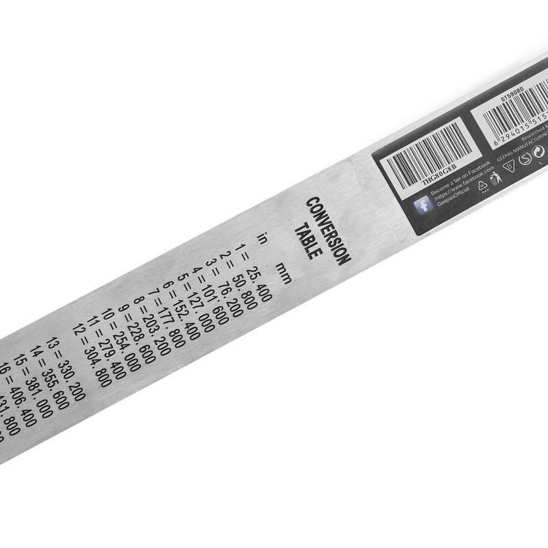 Versatile and handy, this multipurpose Geepas 200cm long ruler is the perfect addition to your toolkit, as it has can be uses in architecture, engineering, geometry, and technical drawings. Utilizing this 30cm ruler is not only convenient but it also helps you make accurate measurements.STAINLESS STEEL BUILD - This metal ruler is corrosion-resistant owing to its stainless steel material, thus ensuring a longer service life.CLEAR GRADUATIONS - For utmost precision and accuracy, this steel ruler has clearly and permanently etched graduations in mm as well as inches.