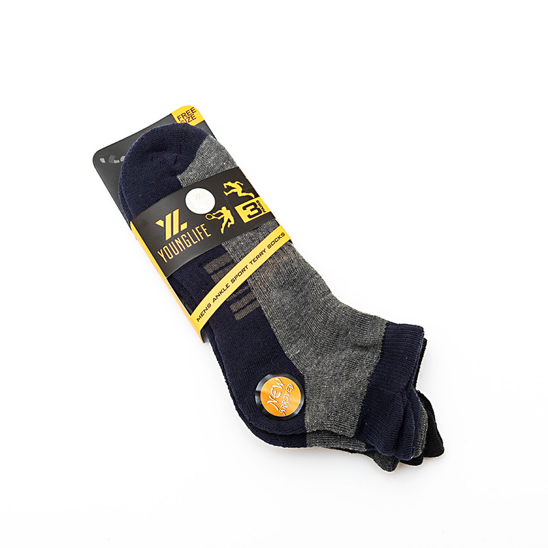 Younglife 3Pair Non-skid Ankle Socks Assorted colour
