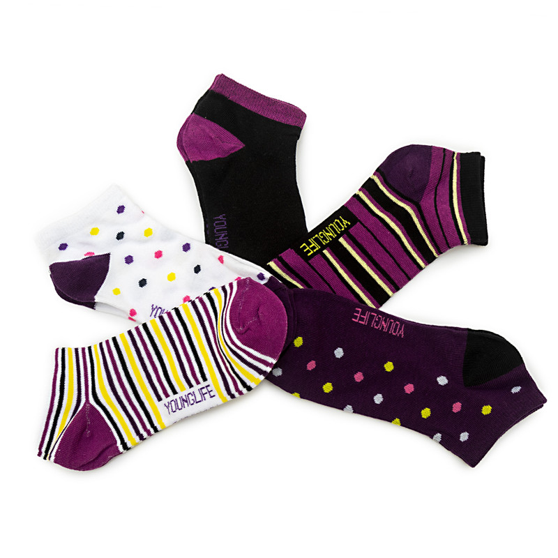 Younglife 5Pair Non-skid Ankle Socks Assorted colour Free Size For Ladies