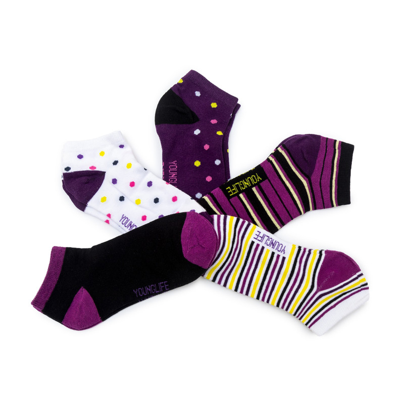 Younglife 5Pair Non-skid Ankle Socks Assorted colour Free Size For Ladies