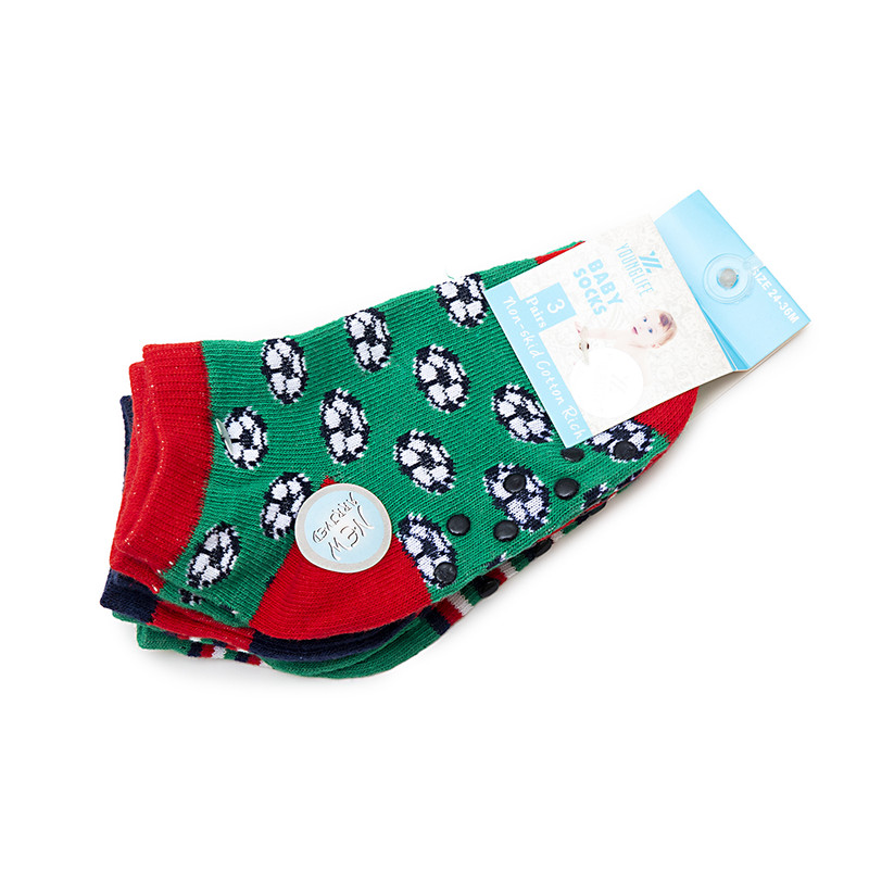 Younglife 3Pair Non-skid Ankle Socks Assorted colour 18-24 month